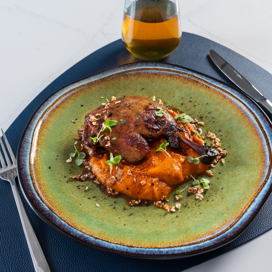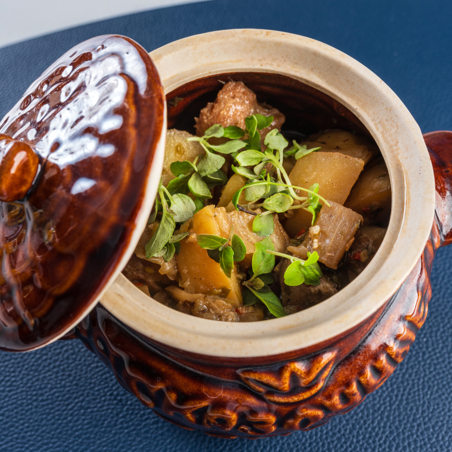 Свиная шейка, запеченая с ананасами , сливочным соусом и сыром